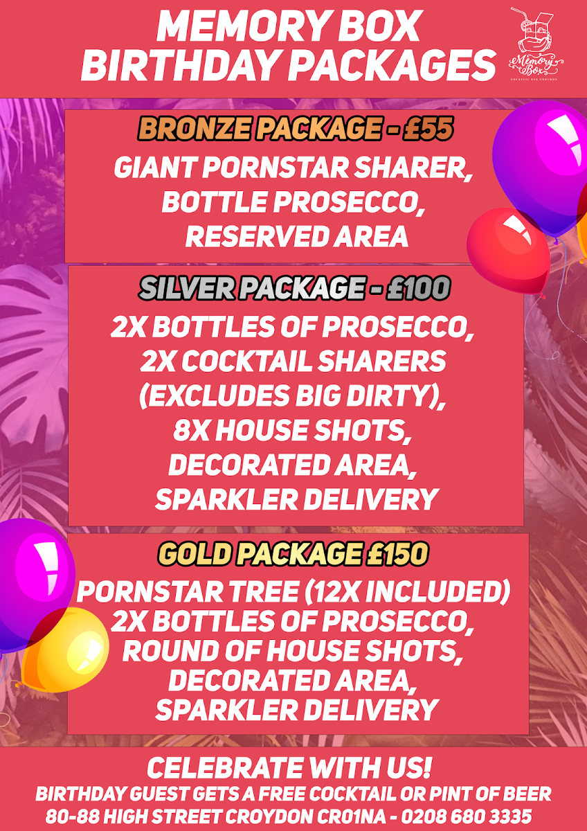 Welcome to Memory Box Cocktail Bar, a unique gem located at 88 High St, Croydon. This spirited venue offers an extensive cocktail menu, featuring a tempting 2-for-1 special on all cocktails until 9 PM. Customers rave about the imaginative drinks that pack a punch. The bar's atmosphere is enchanting, perfect for casual evenings or lively gatherings.
